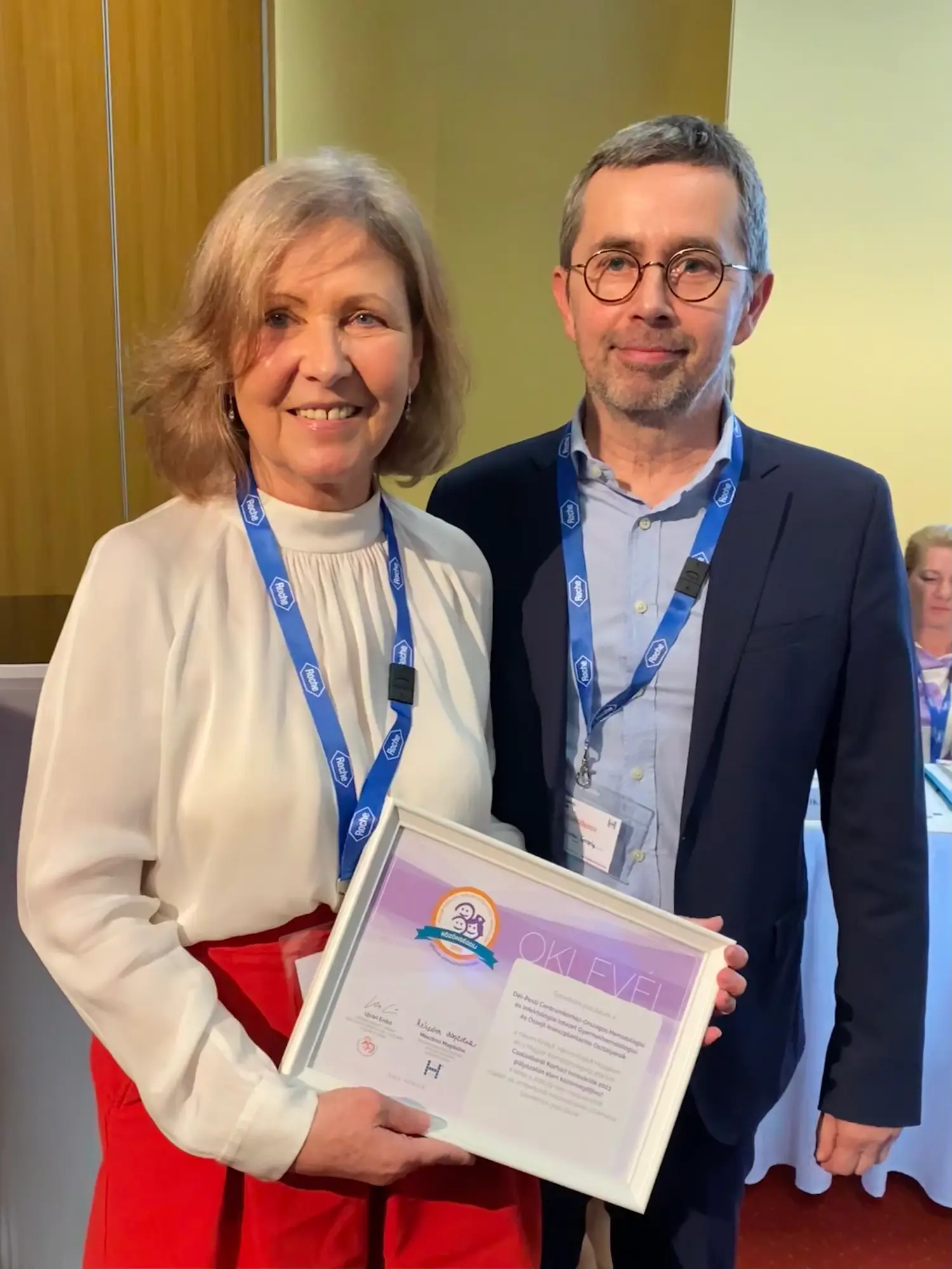 Sedlák Gabriella, a Démétér Ház igazgatója és Dr. Kriván Gergely főorvos, az alapítvány elnöke a Családbarát Kórházi Innováció díj átadóján